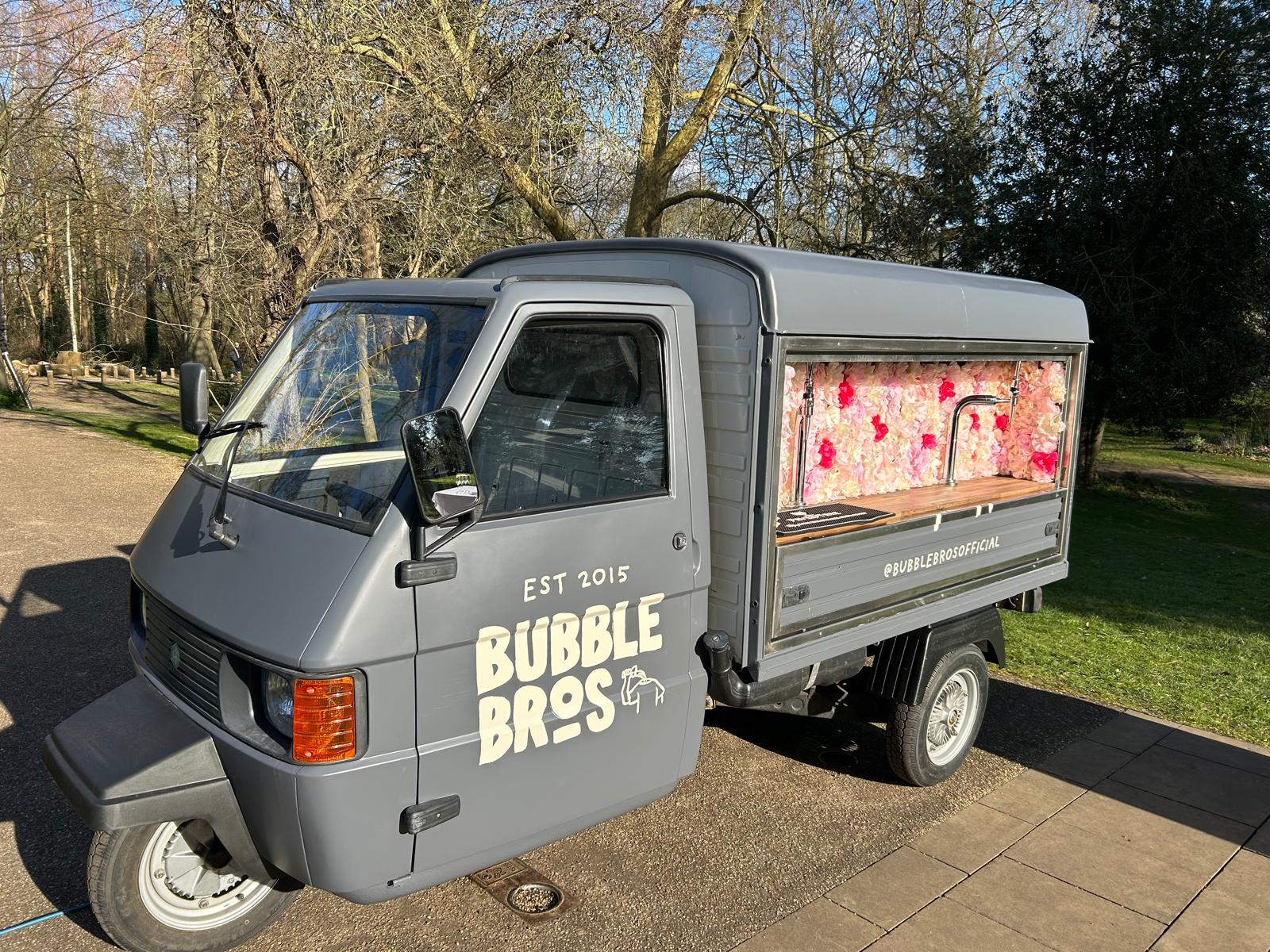 An Italian classic vehicle, converted to serve Prosecco from two taps on the side.